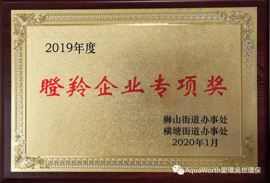 愛環吳世(蘇州)環保股份有限公司榮獲“2019年度瞪羚企業專項獎”。