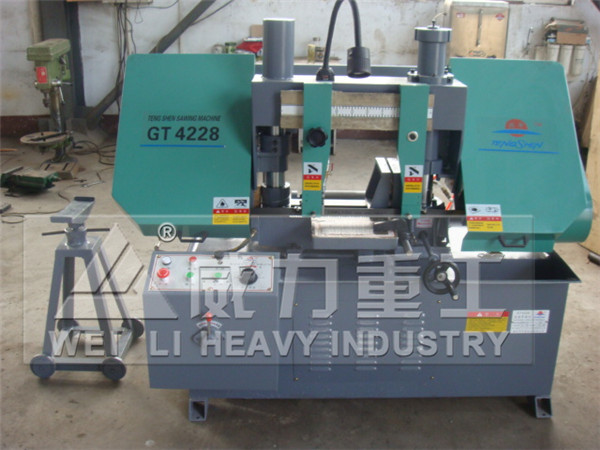 【產品描述】:GT4228金屬帶鋸床 : 金屬帶鋸床(英文名稱Metal band sawing machine,Metal band saw machine)主要用于鋸割碳素結構鋼、低合金鋼、高合金剛、特殊合金鋼和不銹鋼、耐酸鋼等各種金屬材料。 GT4228金屬帶鋸床是一種以金屬鋸條作為切削工具,并用于切割金屬材料的鋸切設備,主要用于黑色金屬的方料。圓料及各種型材的切割,亦可用于切割有色金屬及非金屬材料。由于帶鋸切口窄,切削效率高
